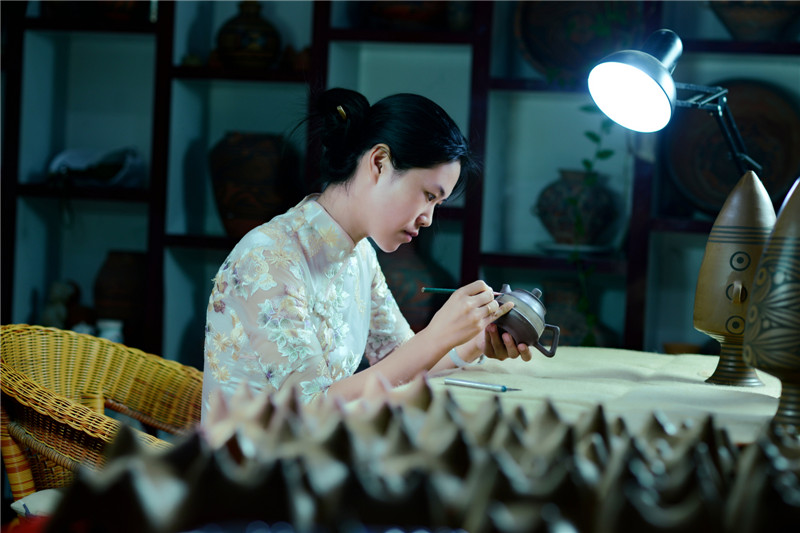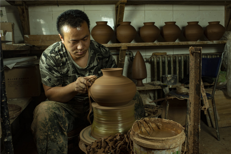 選用優(yōu)質(zhì)陶土,加上一把黃河泥,經(jīng)過打磨、雕刻、燒制等系列工序后,搖身一變成了一個古色古香的彩陶。河南仰韶科技開發(fā)有限公司總經(jīng)理、仰韶彩陶傳承人劉新安說,“我們?nèi)慷际侨斯ぶ铺?,秘法作業(yè),滿輪拉坯成型,天然無機(jī)顏料彩繪,差不多整個制作過程要兩周左右?!?/span>